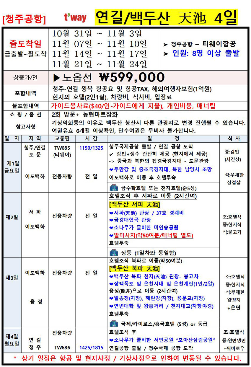 · 산행지 변경으로 인한 환불 요청은 불가합니다. (예약 취소는 기존 취소 규정을 따릅니다.)