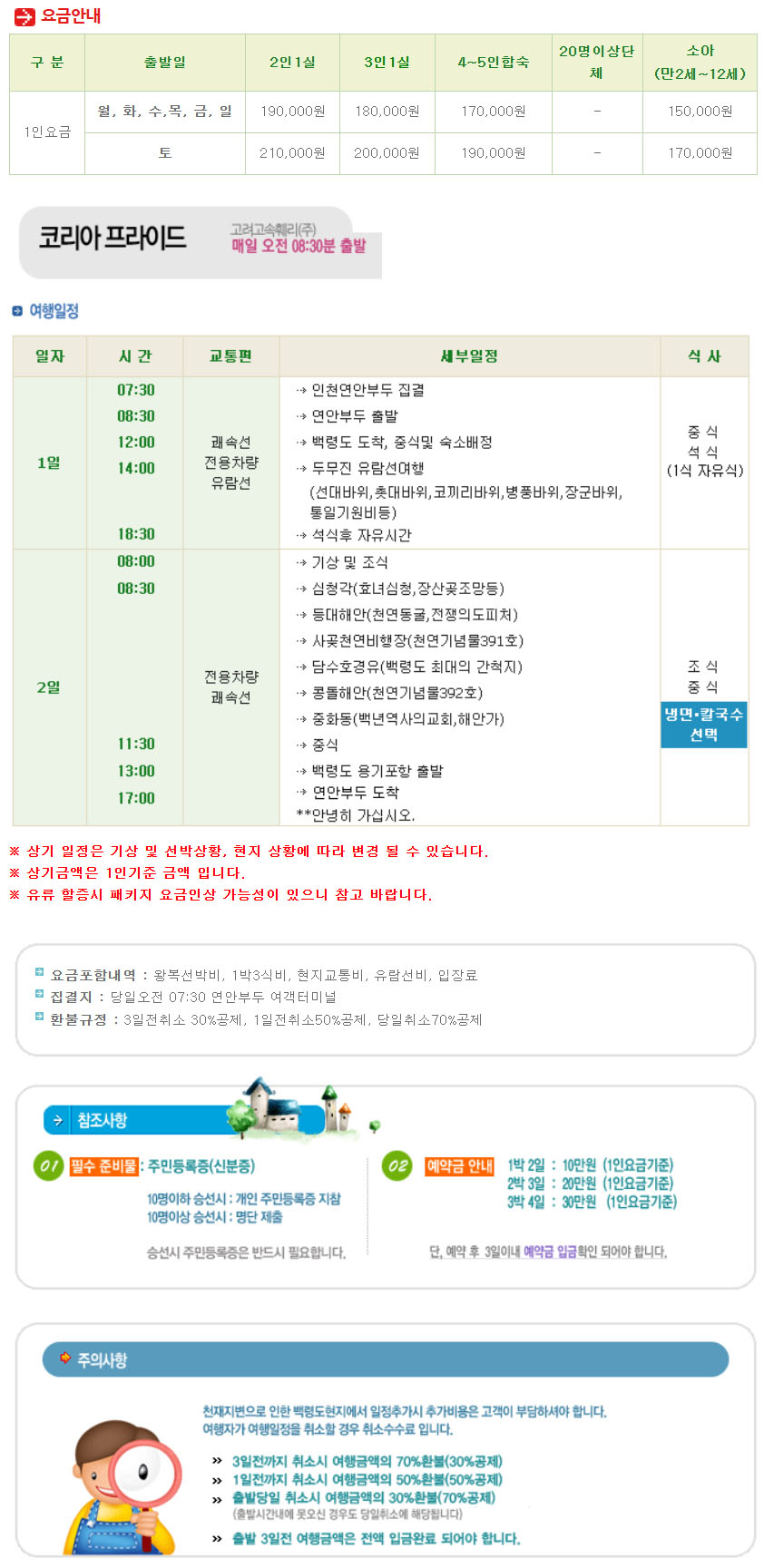 | ·포함내역 | 왕복선박료, 1박3식, 유람선비, 현지교통비, 유람선 외 입장료 |