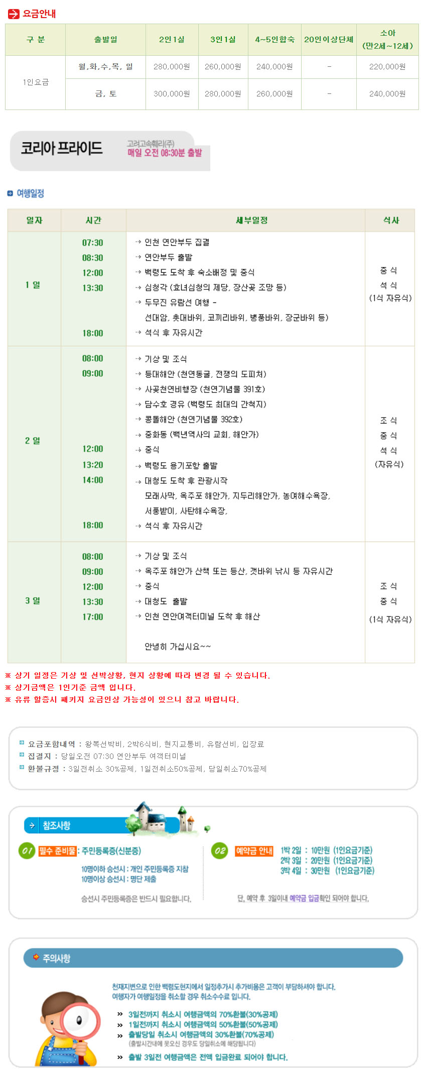 | ·포함내역 | 왕복선박료, 2박5식, 유람선비, 현지교통비, 유람선 외 입장료 |