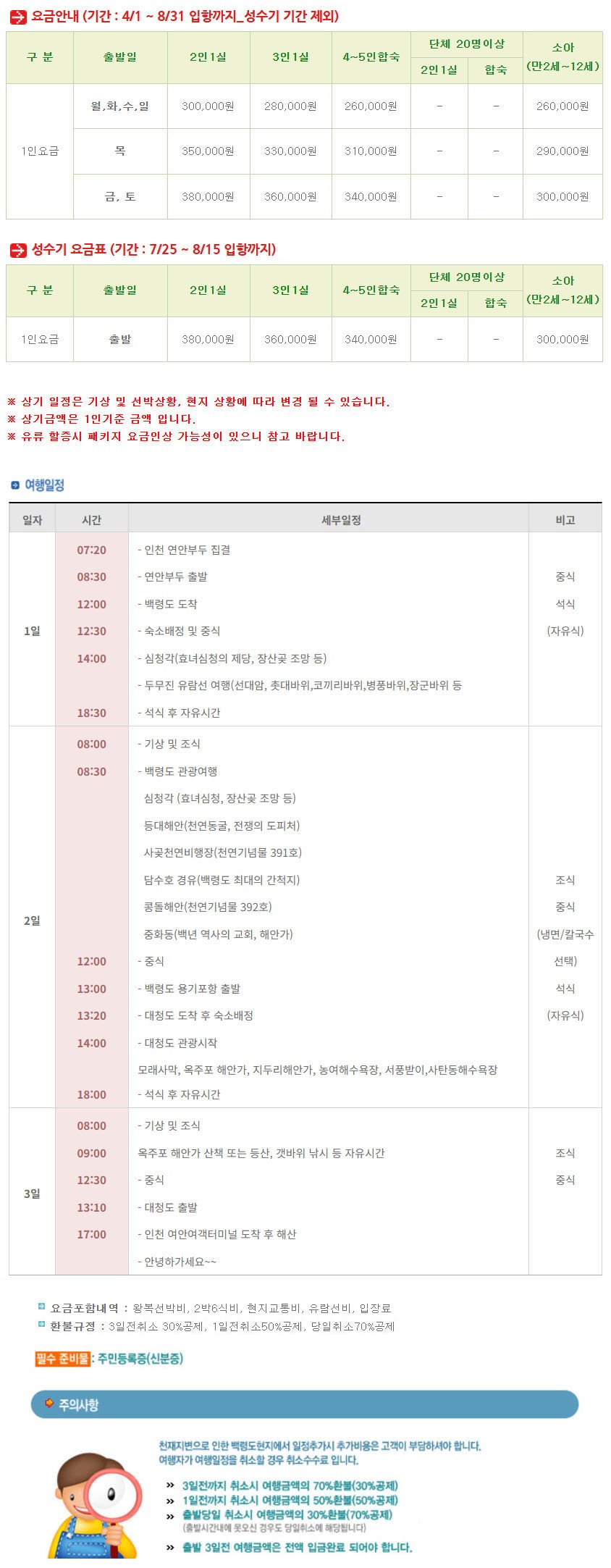 | ·포함내역 | 왕복선박비, 2박6식비, 현지교통비, 유람선비, 입장료 |