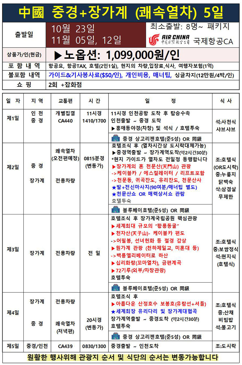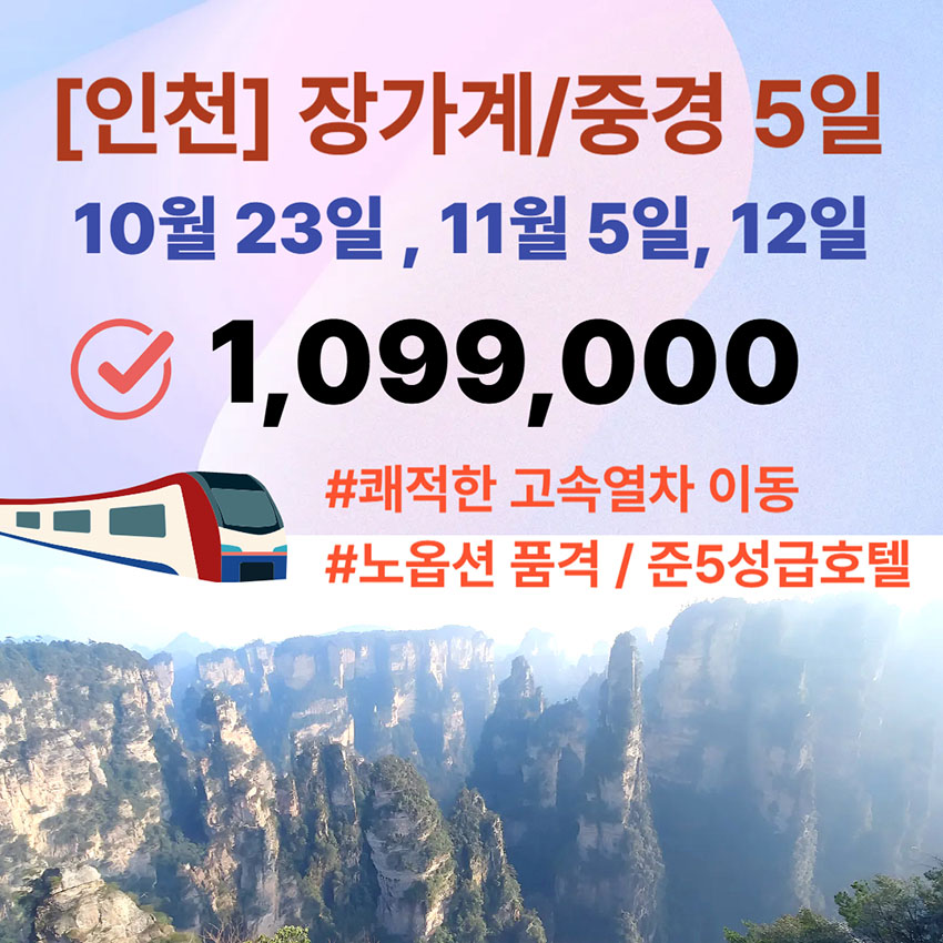 [인천-중경] 장가계 노옵션(쾌속열차) - 4박5일