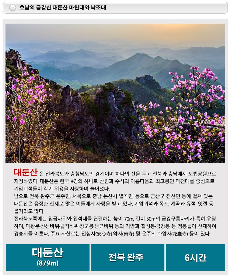 · 본 일정은 탐방로/도로 통제시 산행지가 변경될 수 있습니다.