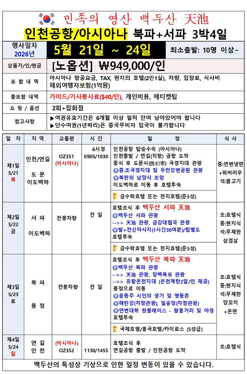 · 산행지 변경으로 인한 환불 요청은 불가합니다. (예약 취소는 기존 취소 규정을 따릅니다.)