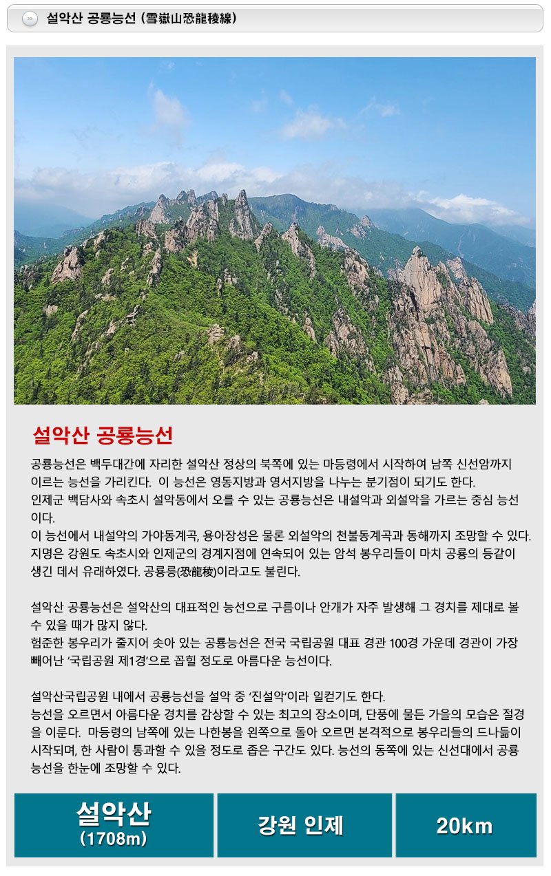 소공원 산행시작 설악산 공룡능선 (약 20km / 12시간)