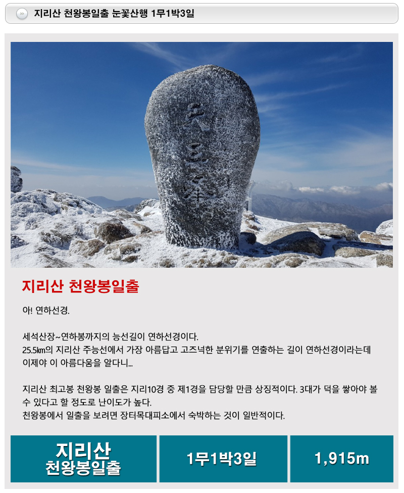 전후 거림도착 거림탐방지원센타 ~ 북해도교 ~ 1,400고지 ~ 세석대피소 ~ 촛대봉 ~ 연하선경 ~ 연하봉 ~ 장터목대피소 1박 거중종주 천왕봉 일출 (1무1박3일)