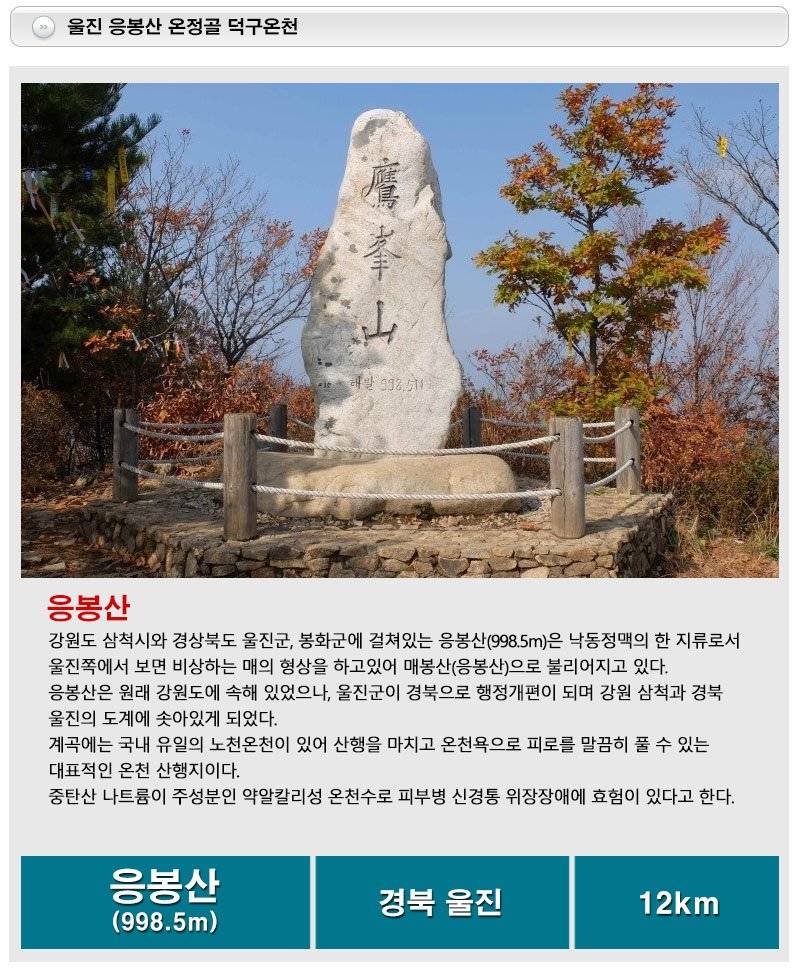 들머리 이동 응봉산 온정골 덕구온천 (약 12km/ 6시간)