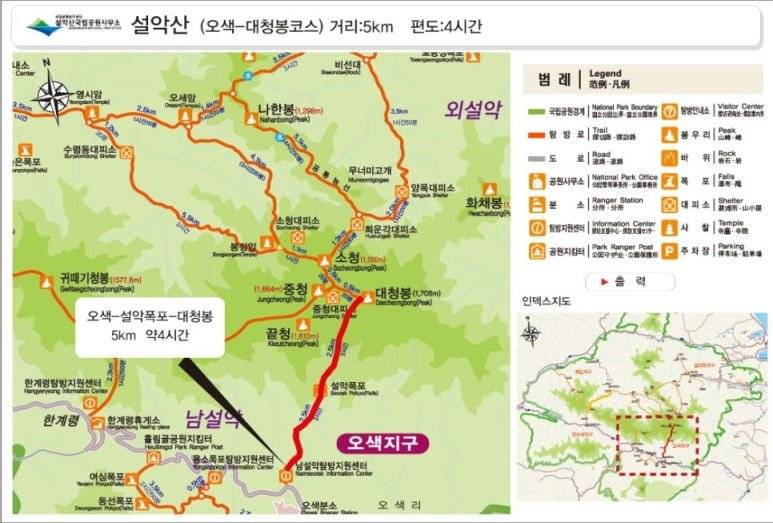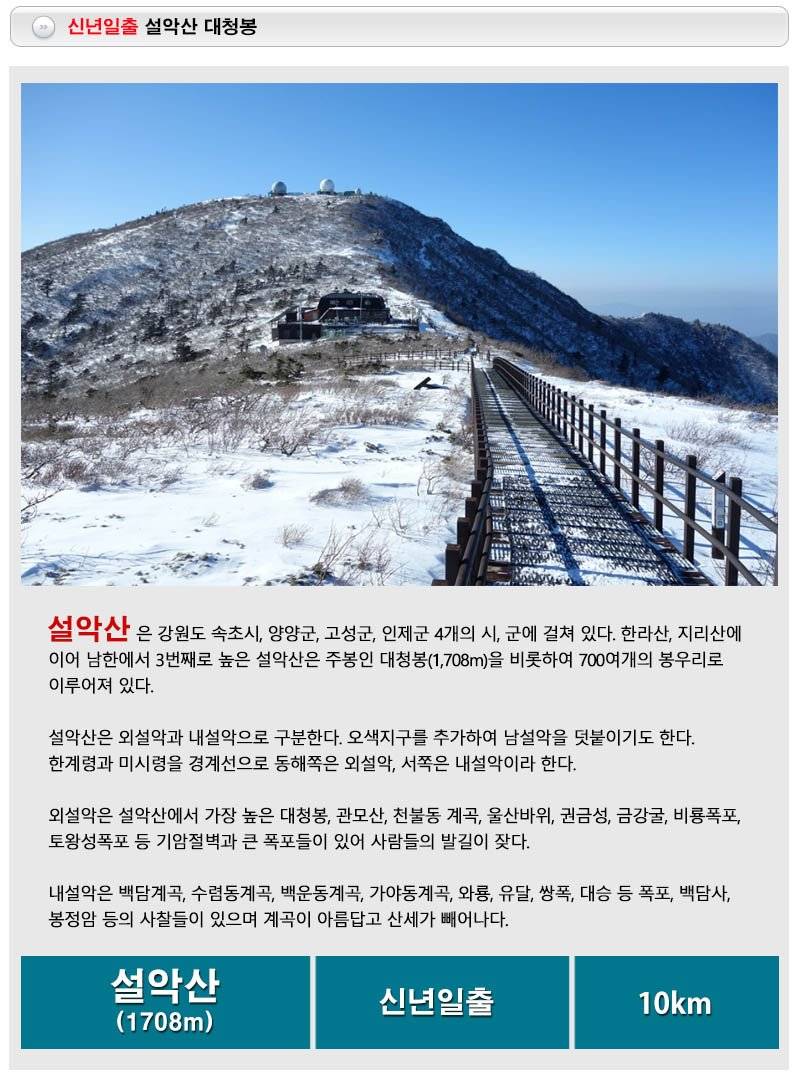 남설악탐방지원센터 도착 < 설악산 대청봉. 신년일출산행 > ▶남설악탐방지원센터~설악폭포~대청봉(왕복코스10km) |