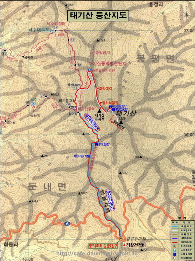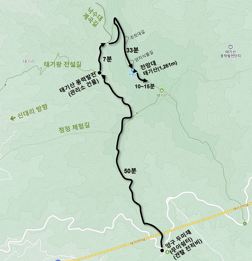 양구두미재 (무이 쉼터) ~ 군부대 ~ 정상 ~ 태기분교 ~ 양구두미재 (원점회귀 산행)