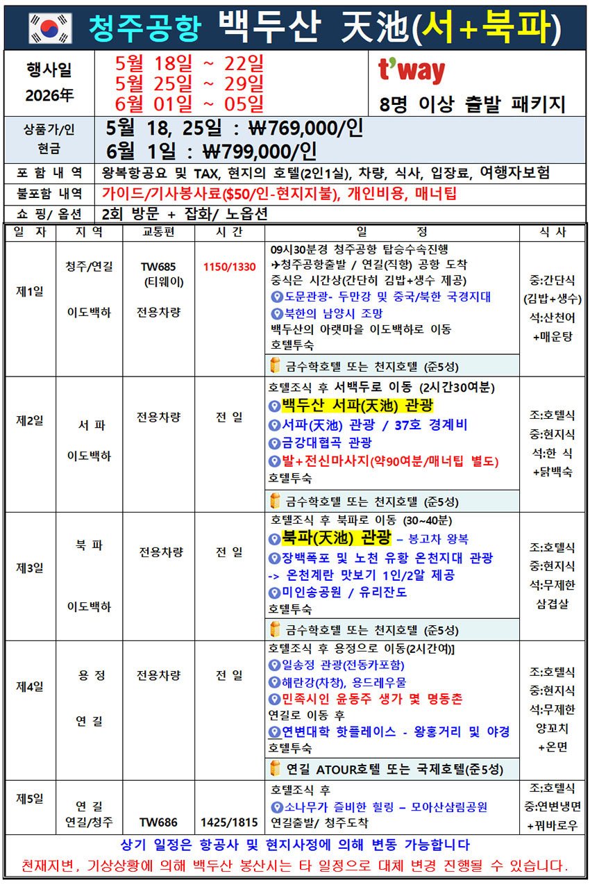 · 산행지 변경으로 인한 환불 요청은 불가합니다. (예약 취소는 기존 취소 규정을 따릅니다.)