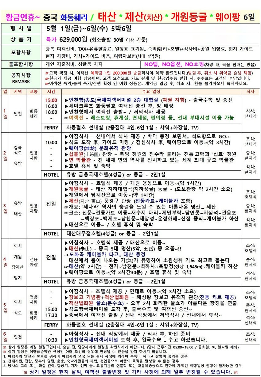 | ·불포함내역 | 일정표 참조 |
